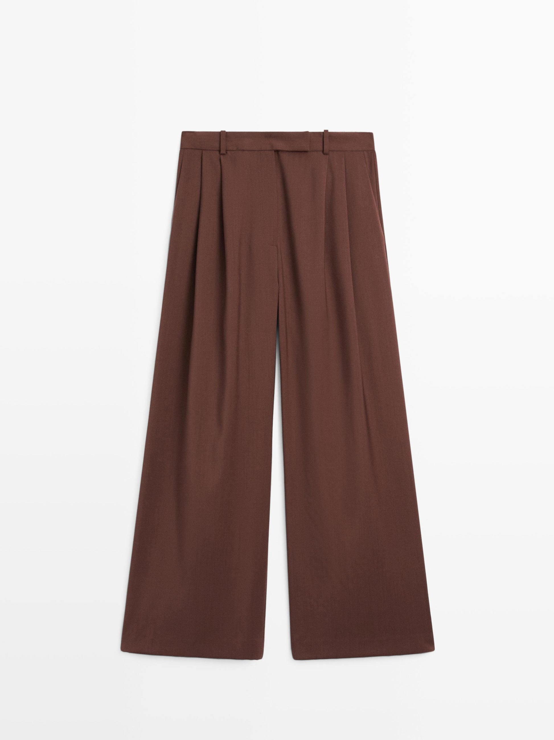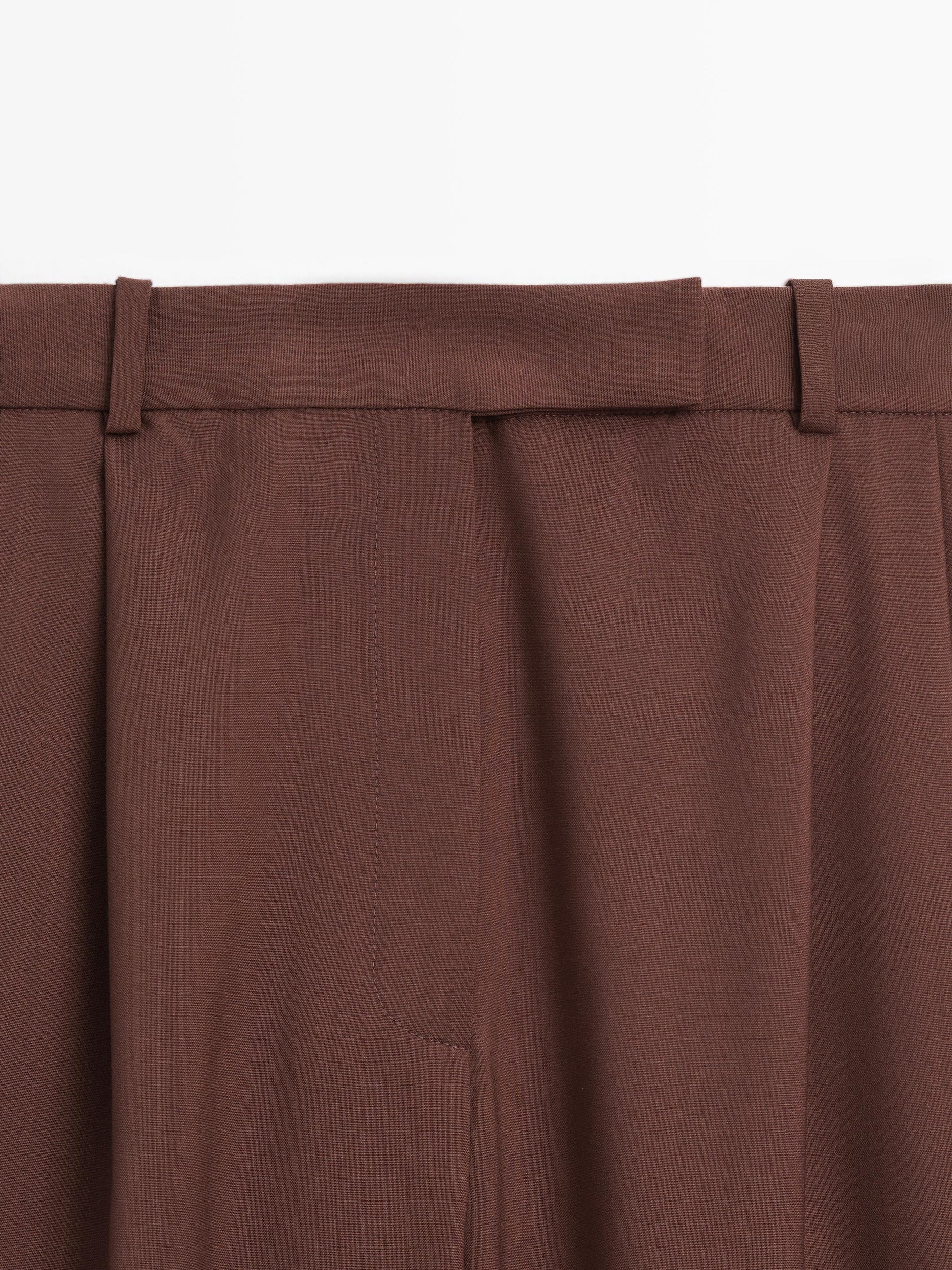 Darted trousers. Concealed zip fastening, buttoned strap, hook-and-eye fastening and inside button. Two side pockets. Two jetted pockets. Made of 100% wool. Fine, lightweight fabric. This garment is part of a suit.