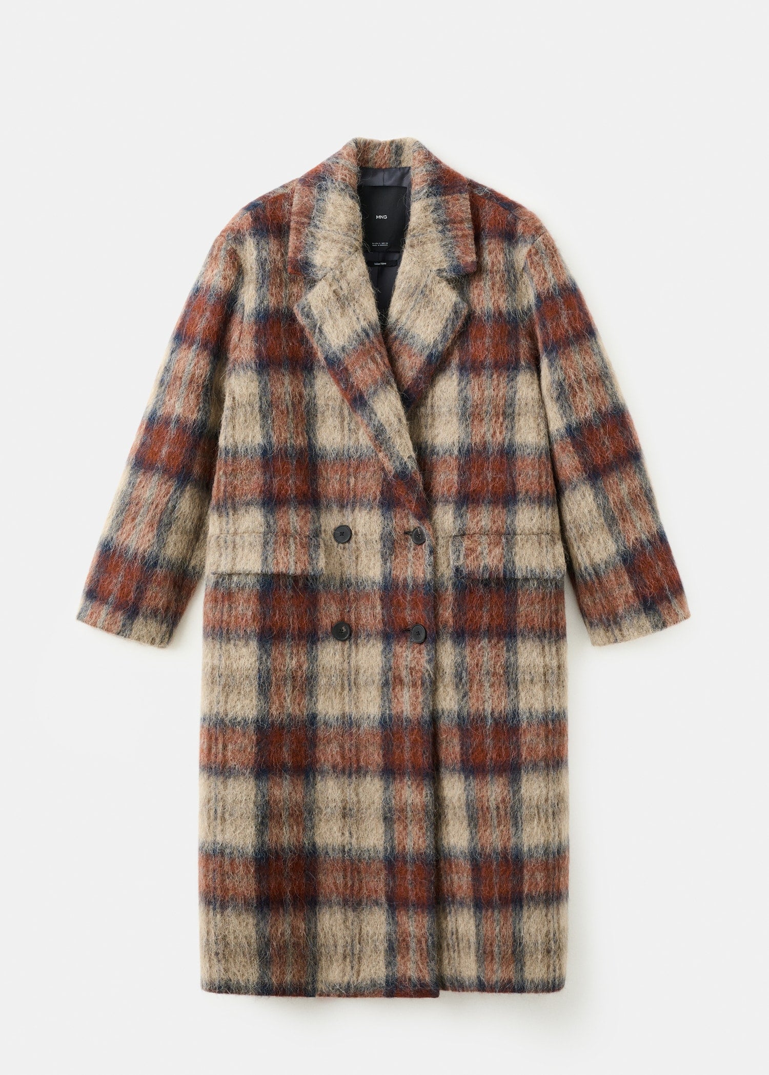 Wool mix fabric. Straight Design. Long design. Lapel-collar V-neck collar. Lapel with notch. Long sleeve. Two side pockets with flaps. Double button fastening. Inner lining.