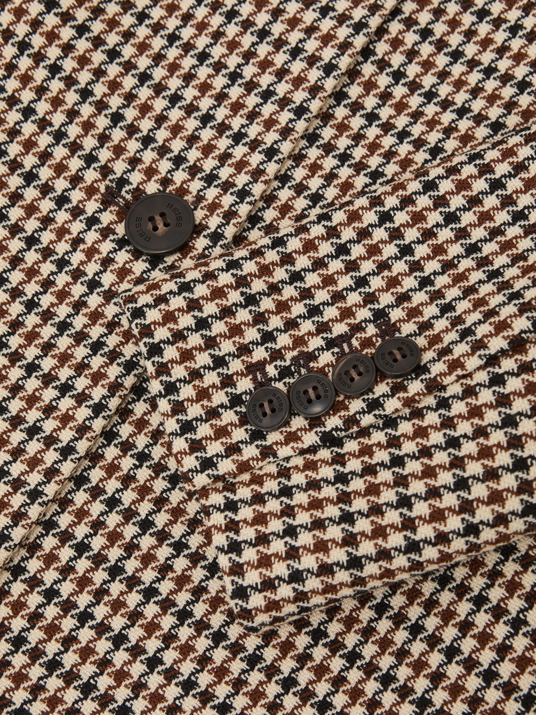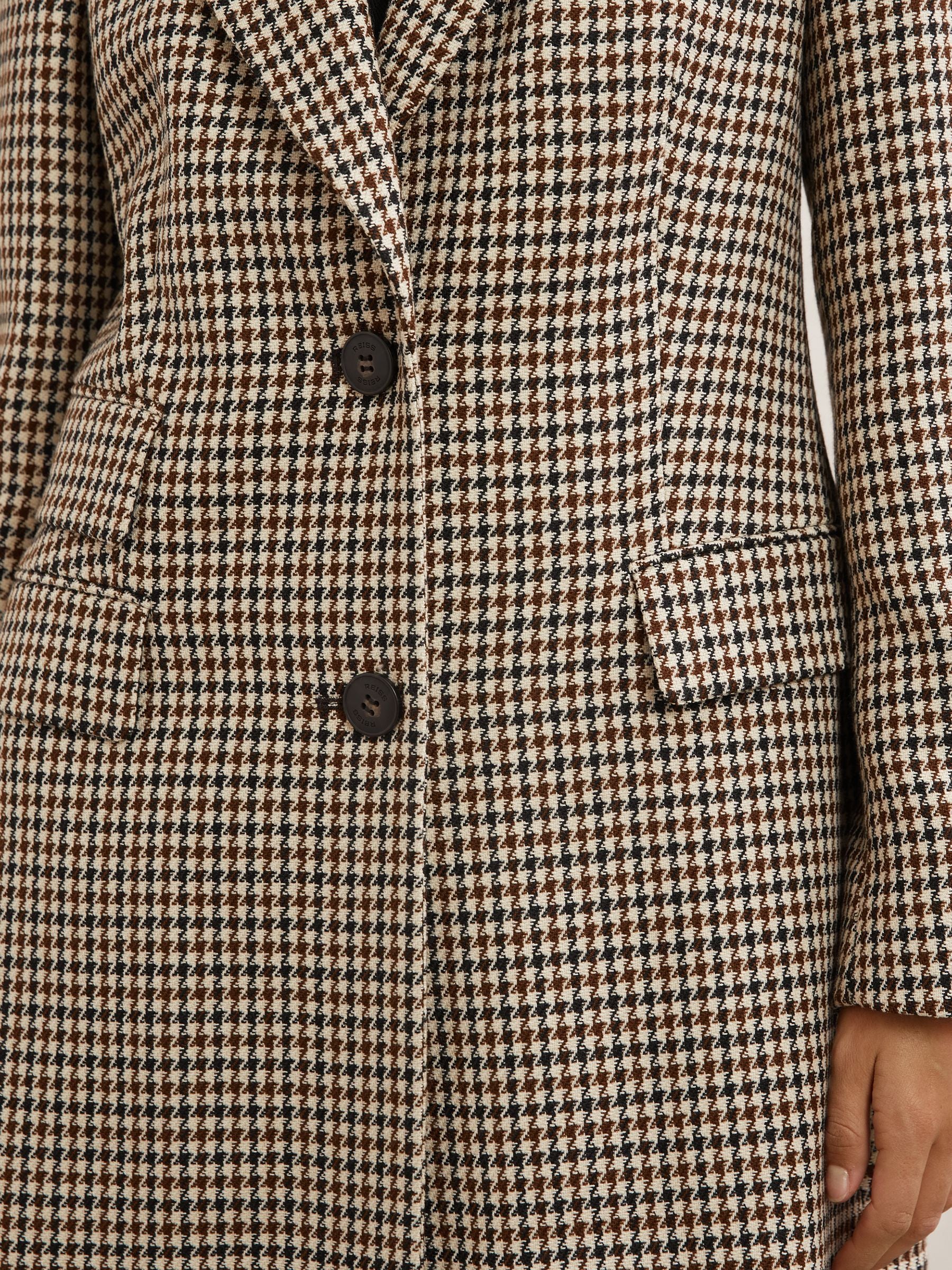 The Karina coat is crafted from a wool blend in houndstooth check, and tailored to a single-breasted silhouette. It features notched lapels and three welt-flap pockets. Wool blend Houndstooth check Single-breasted Notch lapels Button cuffs Three flap-welt pockets