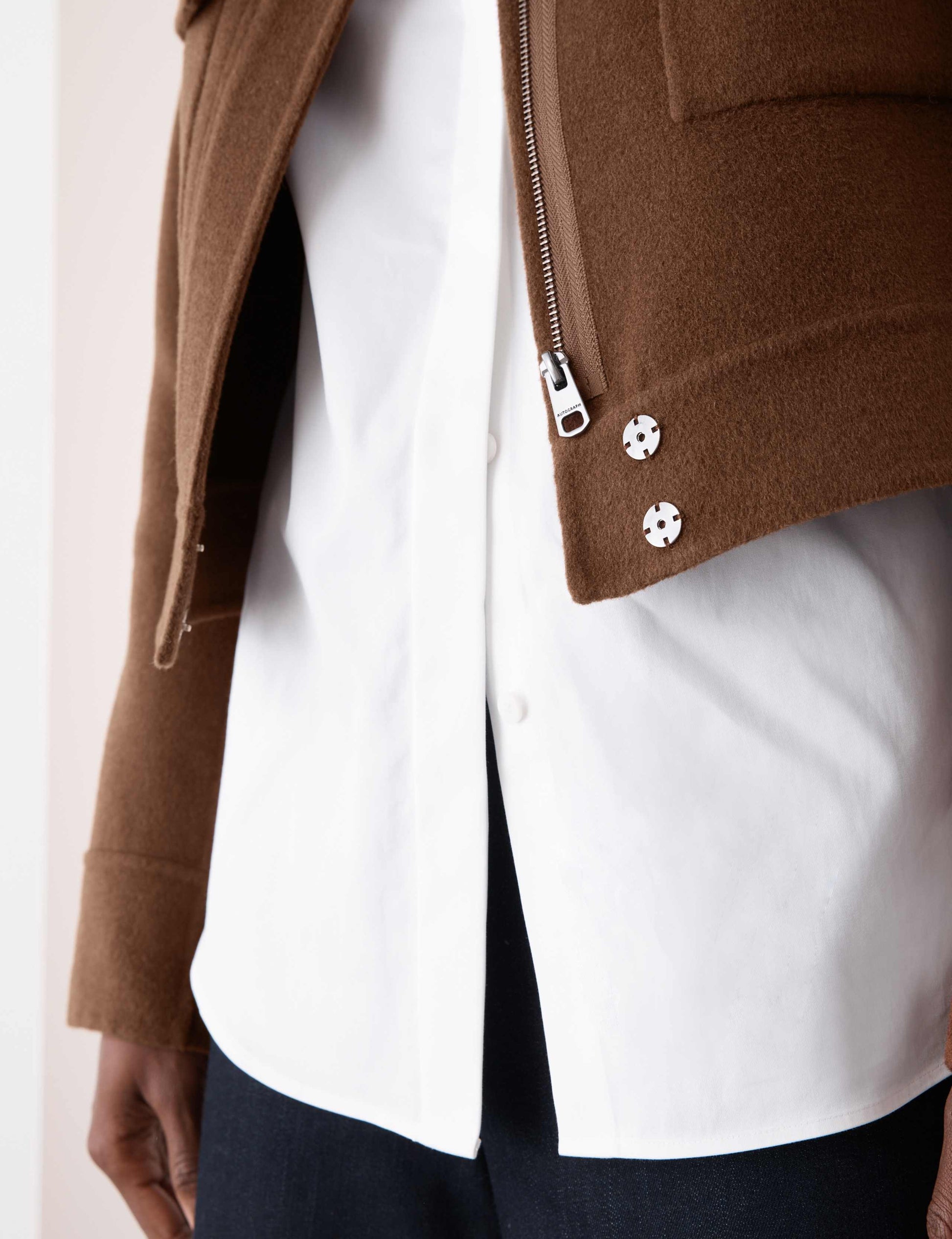 This wool-blend utility jacket from our Autograph collection is a sophisticated addition to your outerwear selection. It's designed in a regular fit, with a cropped length and a neat funnel neck. The concealed zip and popper fastening at the front creates a streamlined effect. A pair of chest pockets add a practical finishing touch.