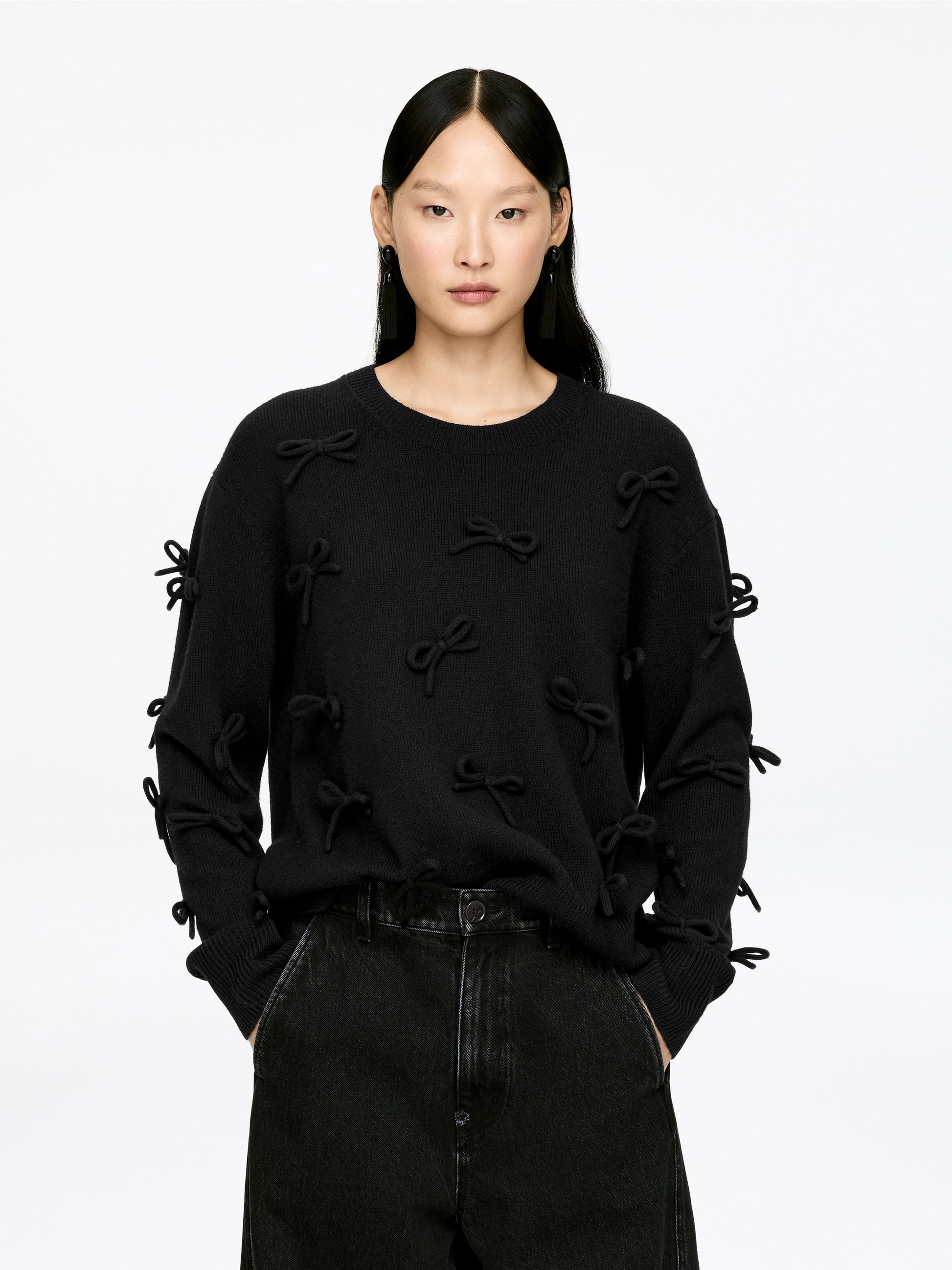 Jumper with bows, knitted from pure wool. A crew-neck style with ribbed trims. Loose fit. The style contains 100% RWS wool (TE-00047206). Products certified to the Responsible Wool Standard (RWS) contain wool fiber from farms independently certified to animal welfare and land management requirements.