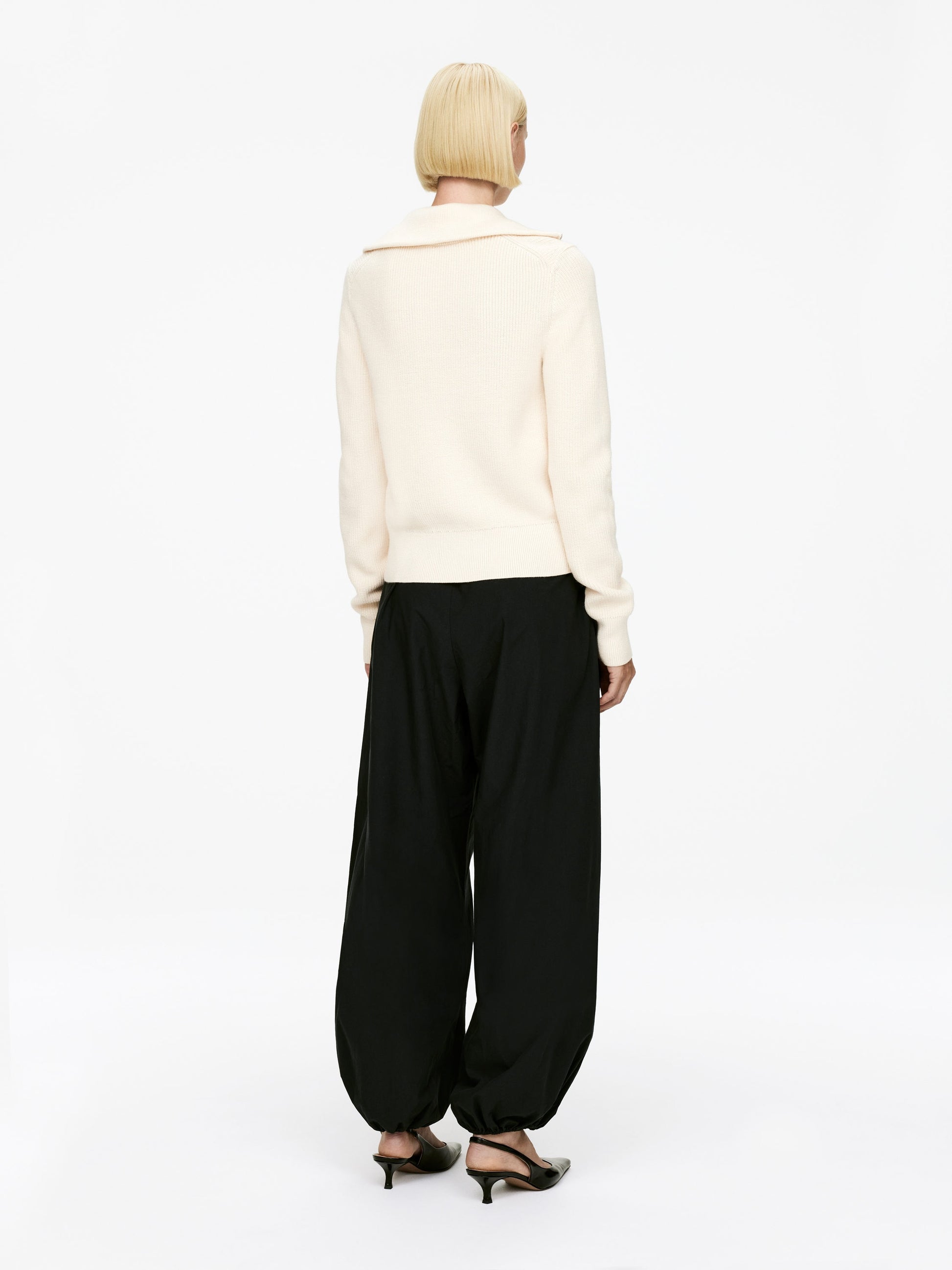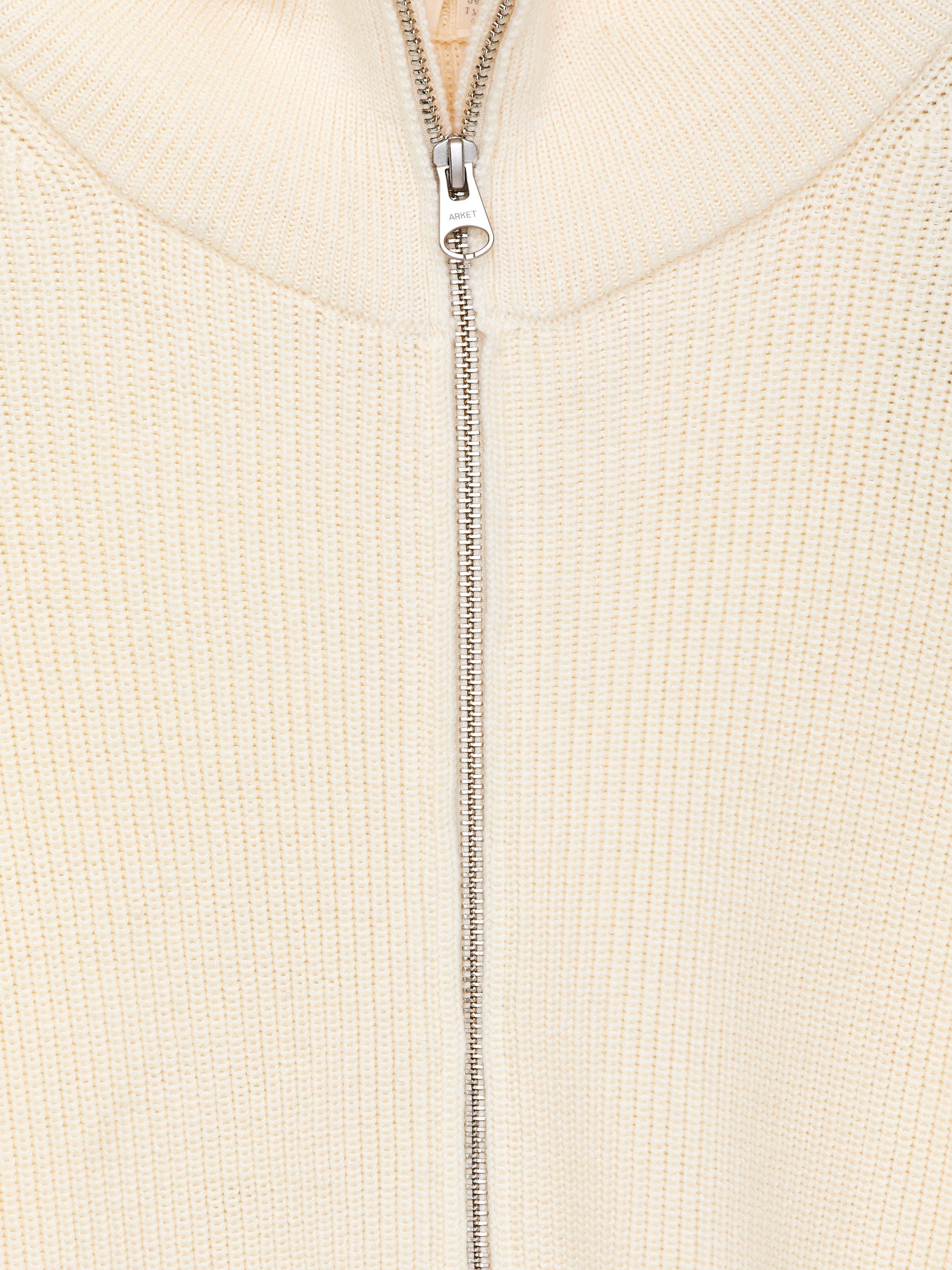 Zip-up cardigan crafted from a soft wool–cotton blend. Designed with a high neck and ribbed trims. Cut in a regular fit for easy layering. The style contains 68% RWS wool (TE-00047206). Products certified to the Responsible Wool Standard (RWS) contain wool fiber from farms independently certified to animal welfare and land management requirements.
