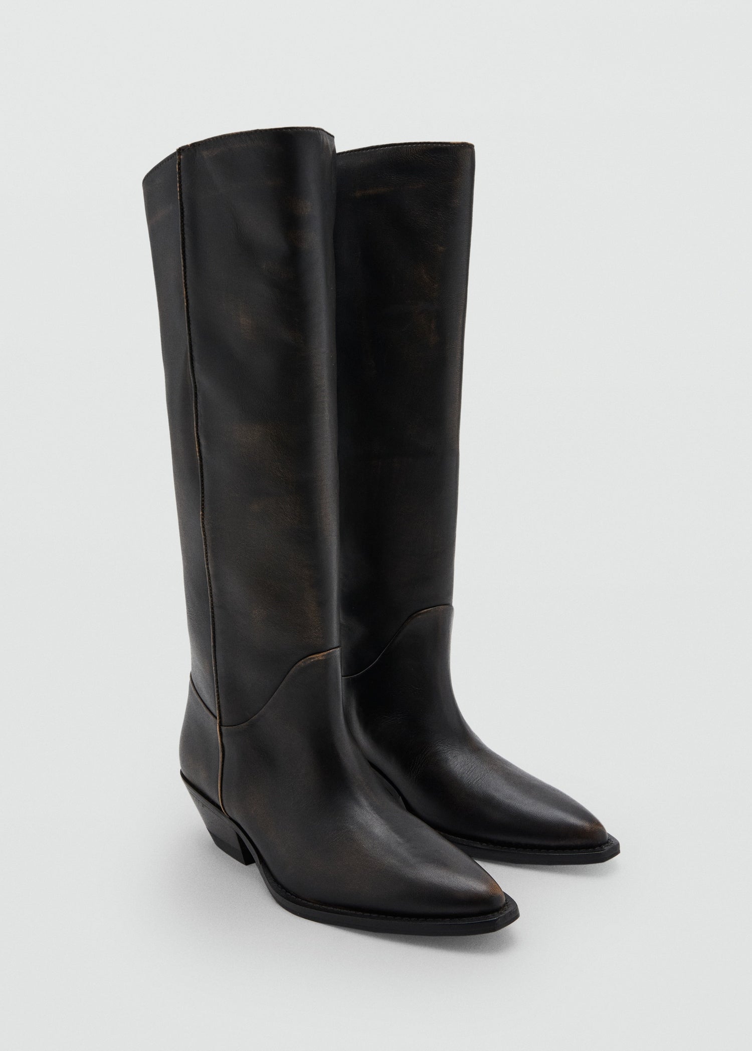 100% bovine leather. Brushed finish. High shaft. Pointed. Block heel. No Fastening. 4 cm heel. Online Exclusive.