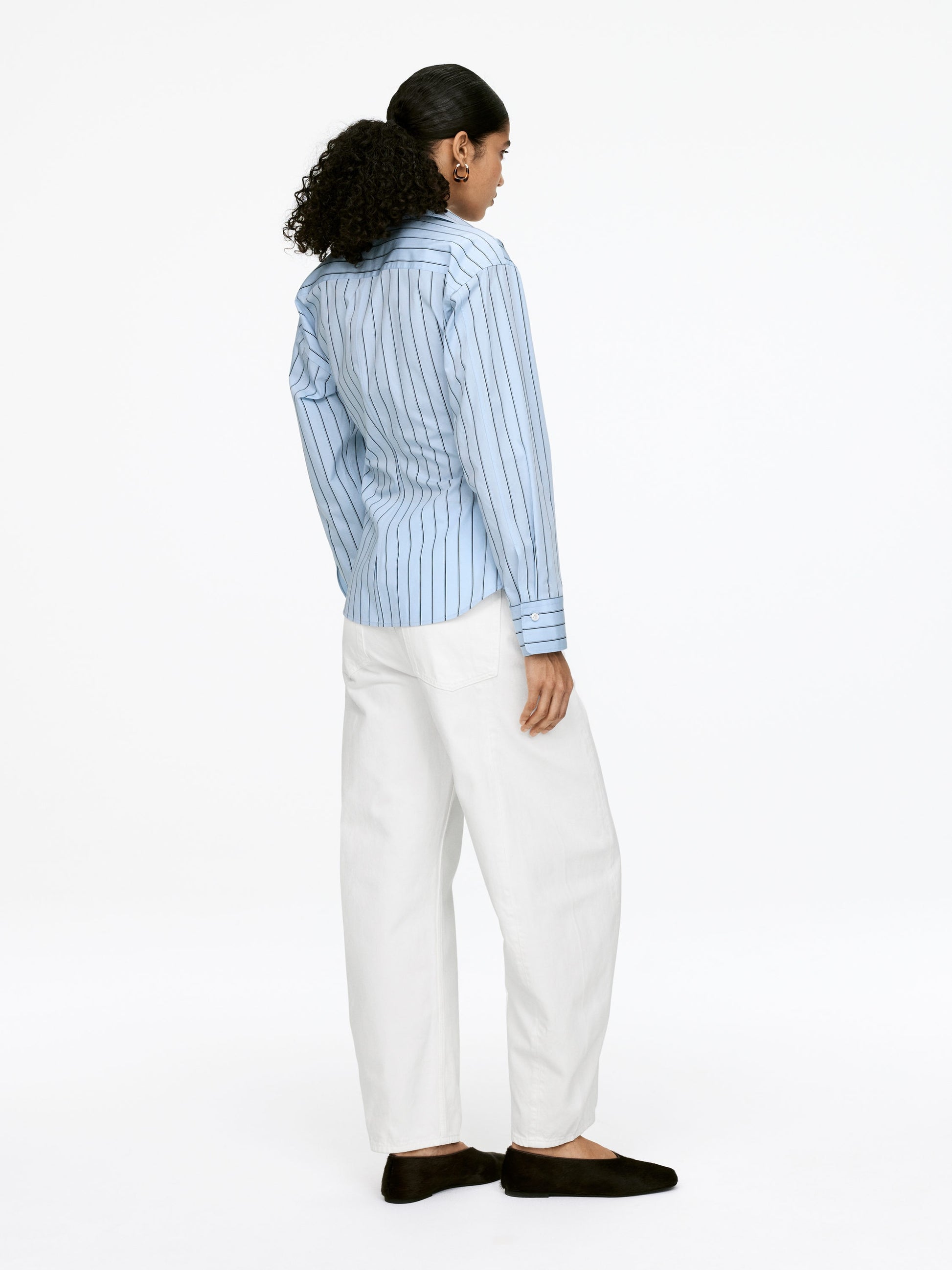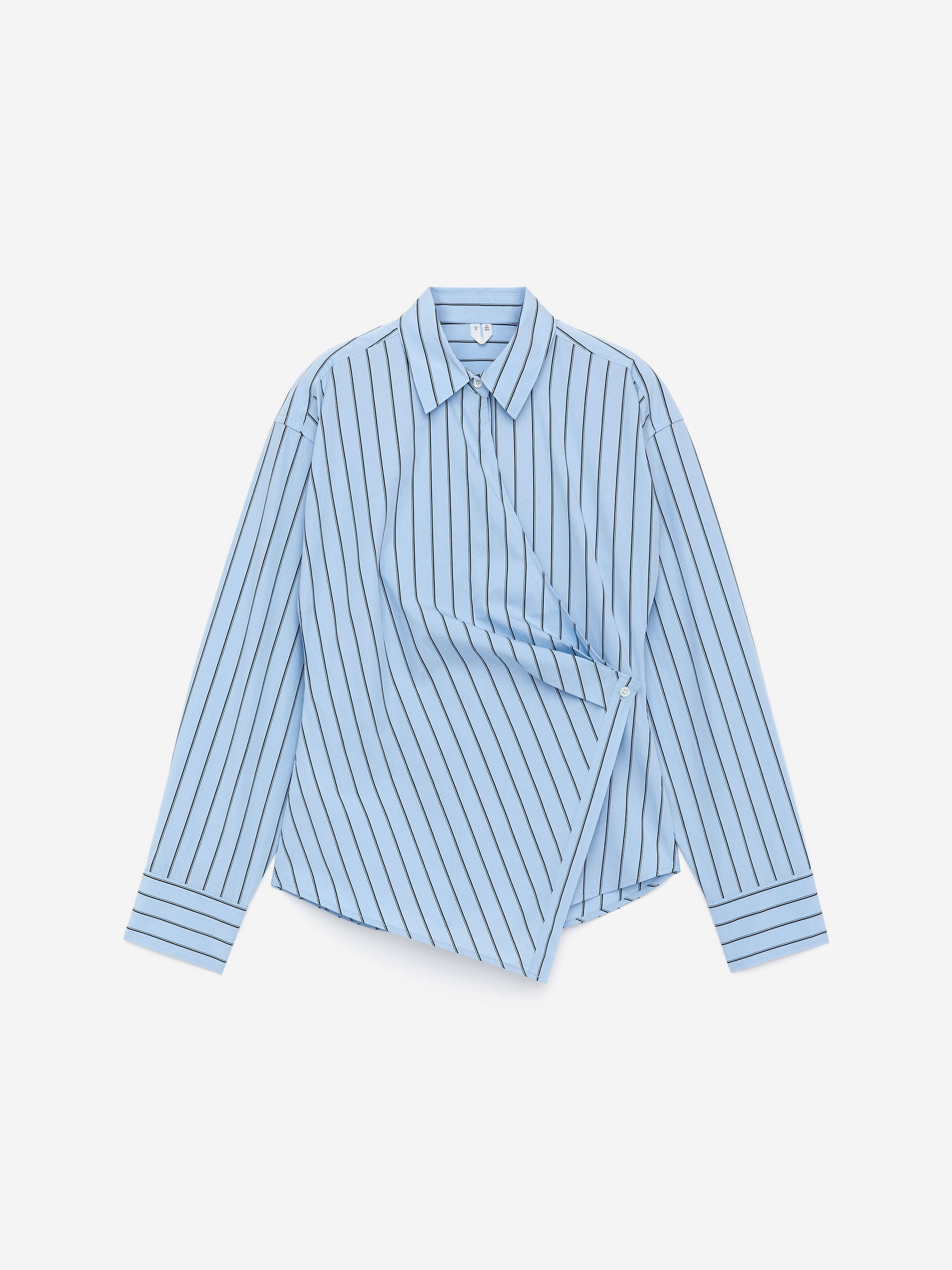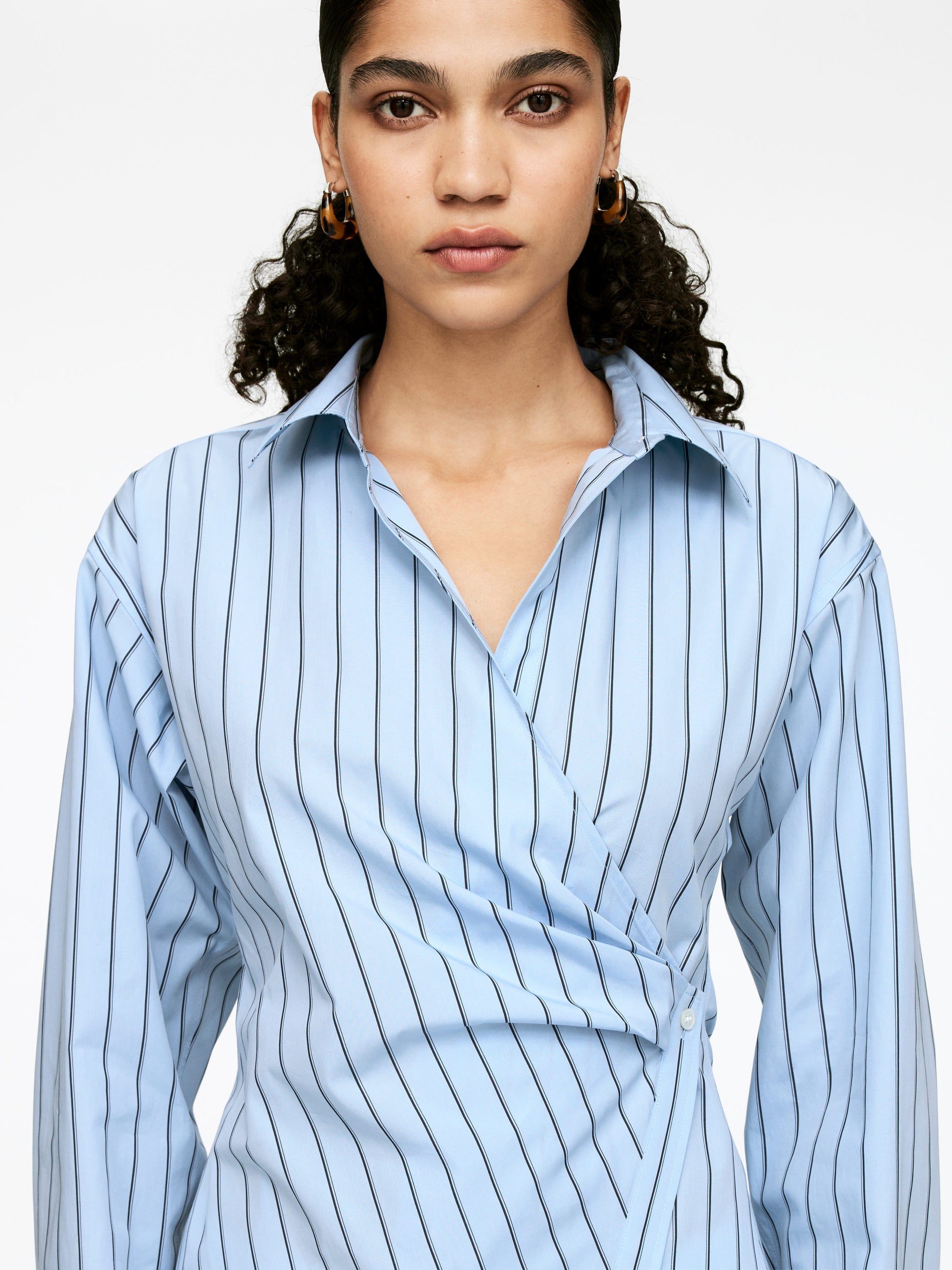 Wrap shirt with button fastening and a rouleau strap on the inside. Slim fit.