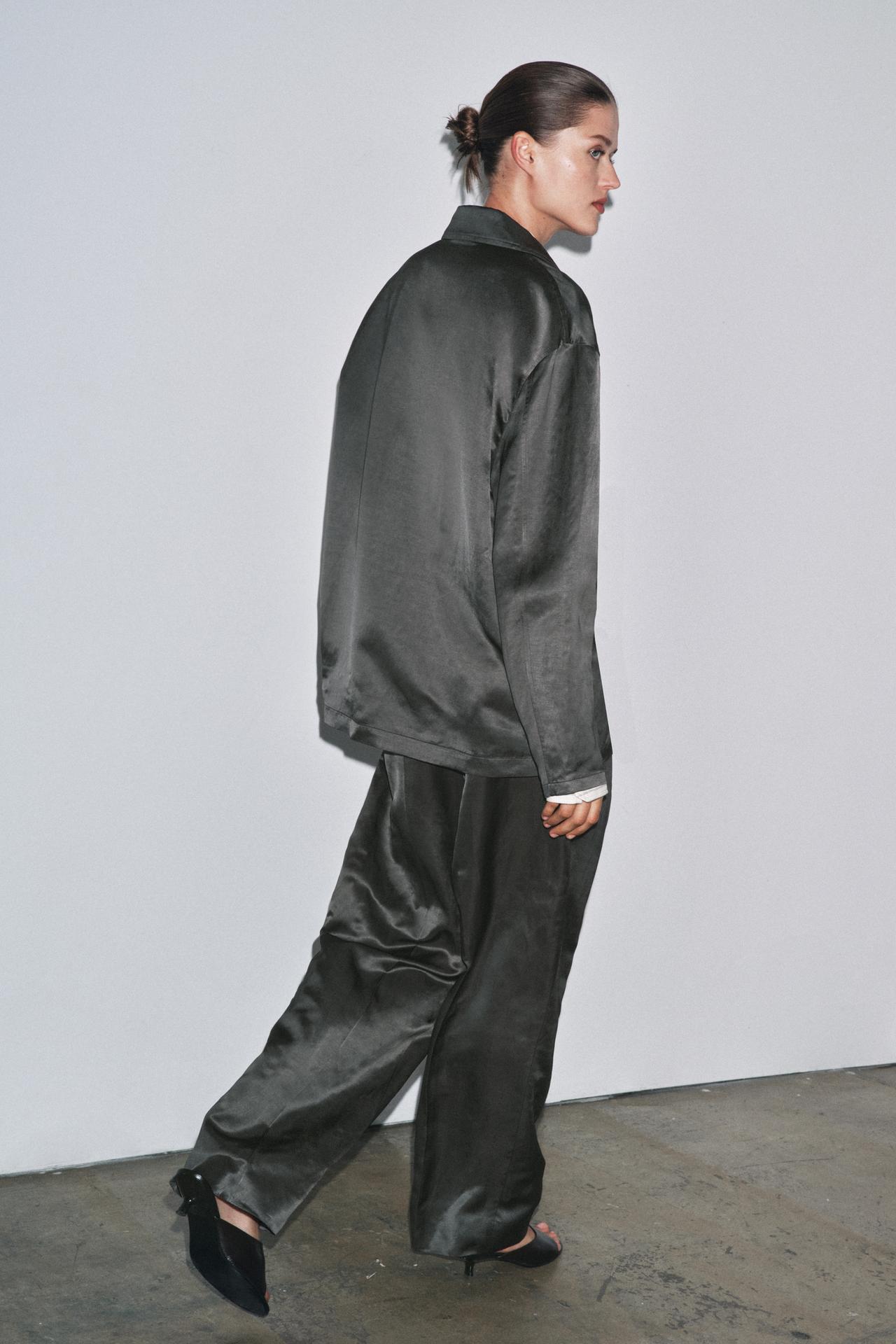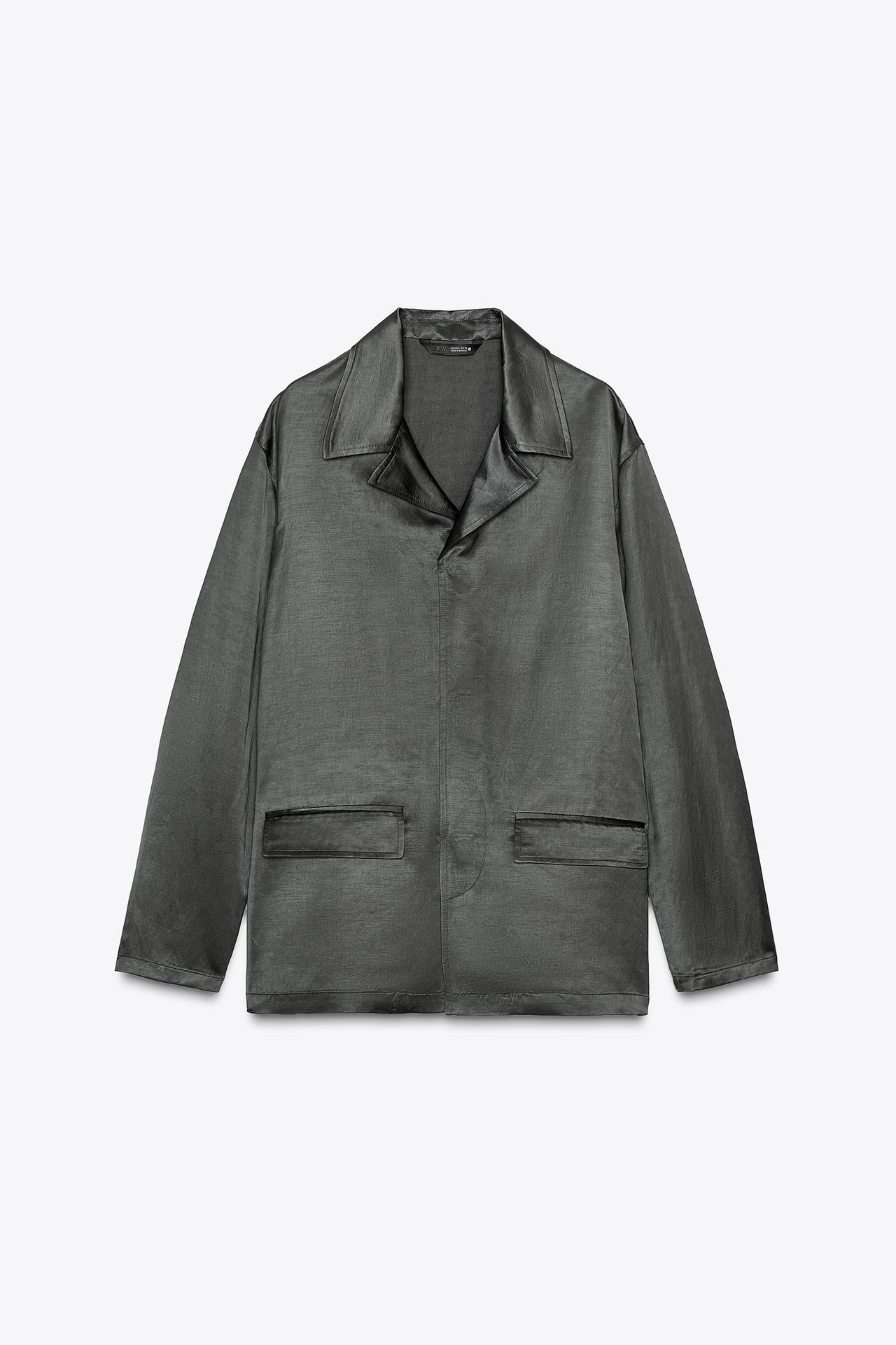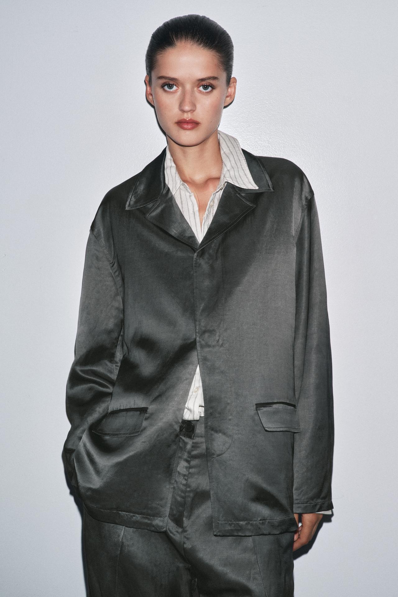 Blazer made from a viscose and 38% linen blend yarn. Featuring a notched lapel collar and long sleeves. Front flap pockets. Front fastening with hidden buttons.