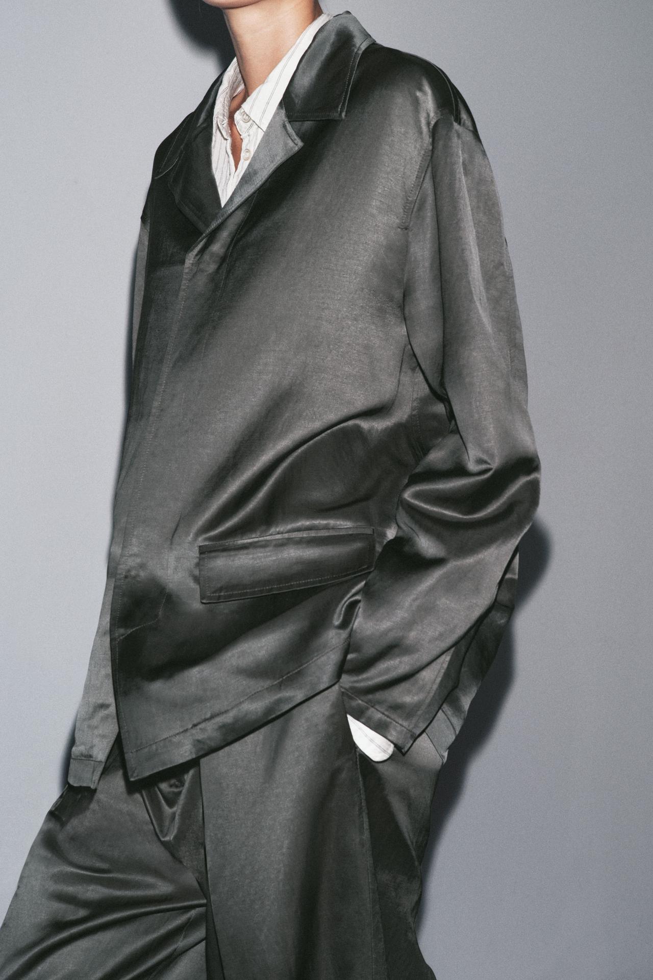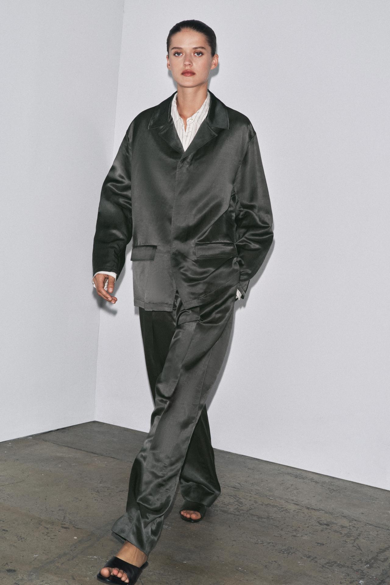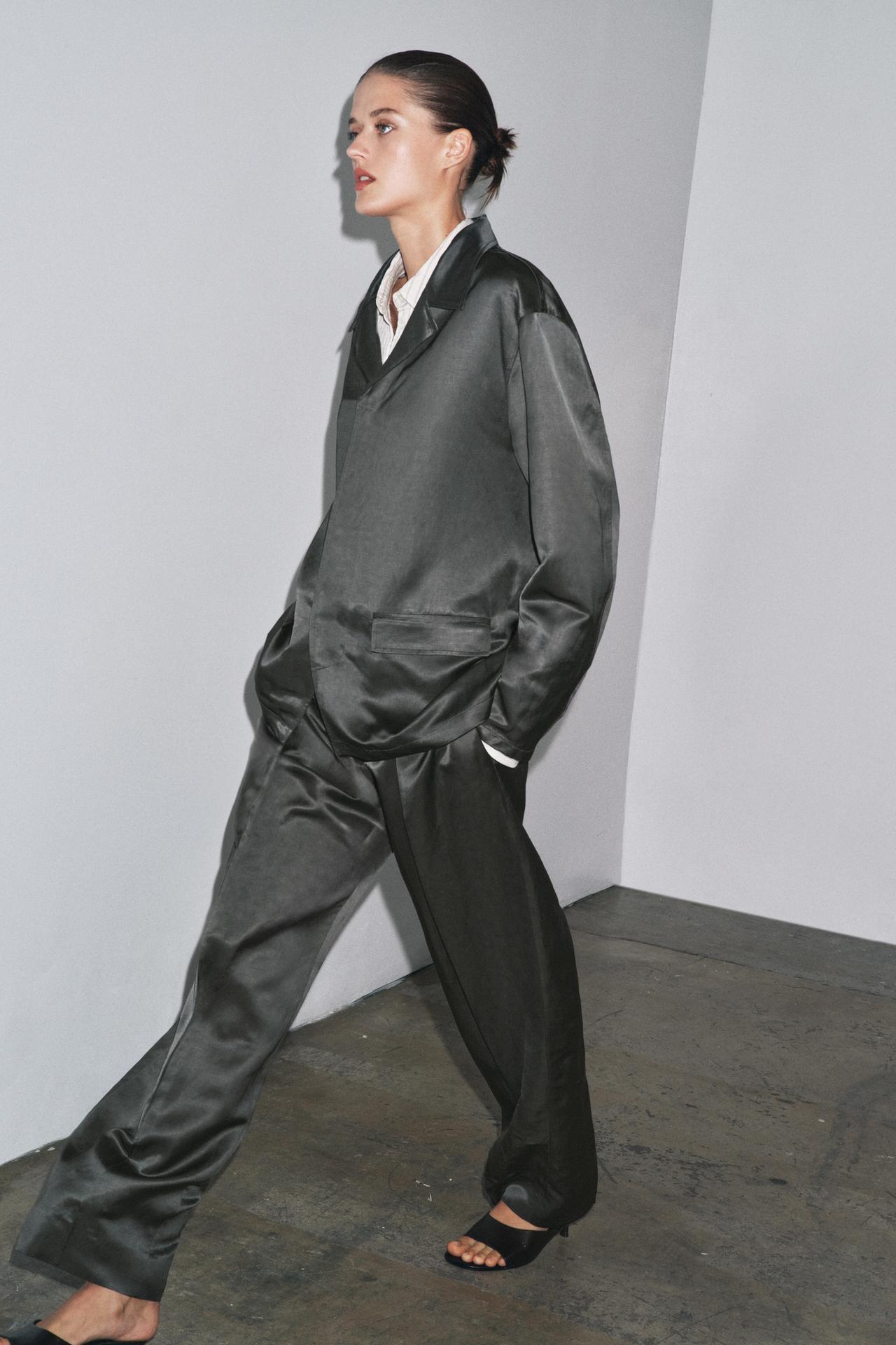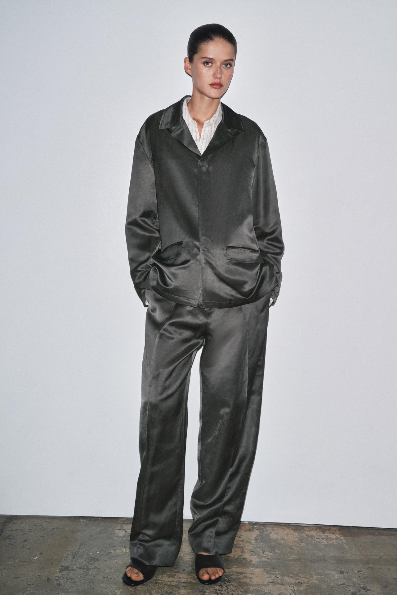 Blazer made from a viscose and 38% linen blend yarn. Featuring a notched lapel collar and long sleeves. Front flap pockets. Front fastening with hidden buttons.